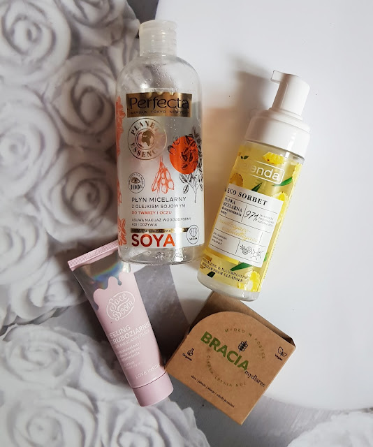 8.Perfecta Soya płyn micelarny z lejkiem sojowym - dwufazowy, fajny płyn, używałam do zmywania wodoodpornego tuszu. Moja kolejna flacha i pewnie znowu do niego wrócę 😊