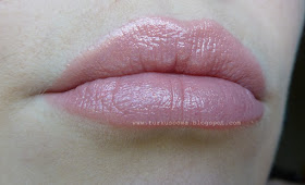 Konsystencja mięciutka,półprzejrzysta,zapach słodki waniliowy :) dobrze się nakłada,nie warzy w zagłębieniach :)  dwa zdjęcia poniżej robiłam przy pochmurnej pogodzie-tu widać że odcień jest bardziej różowy.Szminka ładnie błyszczy bo ma dużo drobinek w różnych kolorach,jednak nie są bardzo widoczne na ustach,tylko raczej z bliska na szmince :)
